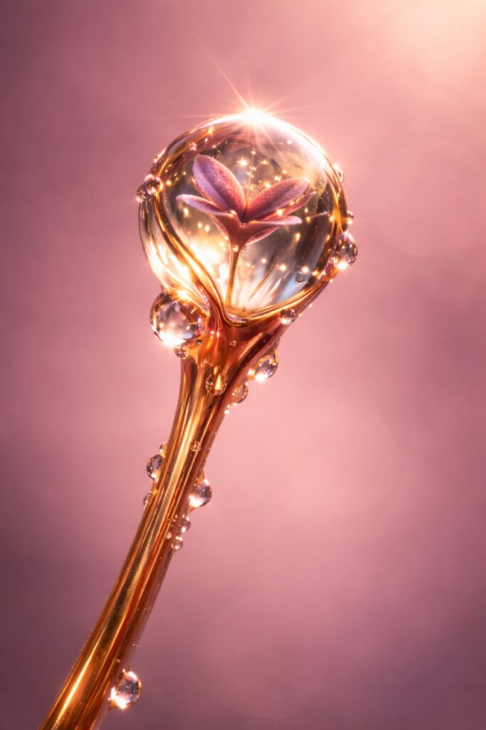 Each piece carries a glowing presence where copper tones meets floral form.