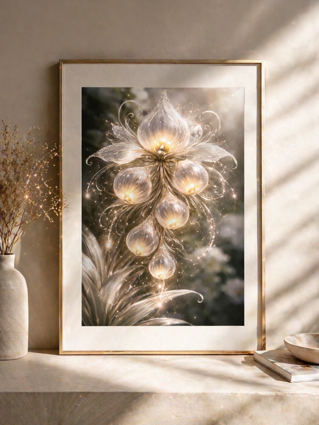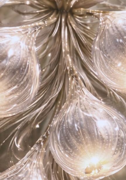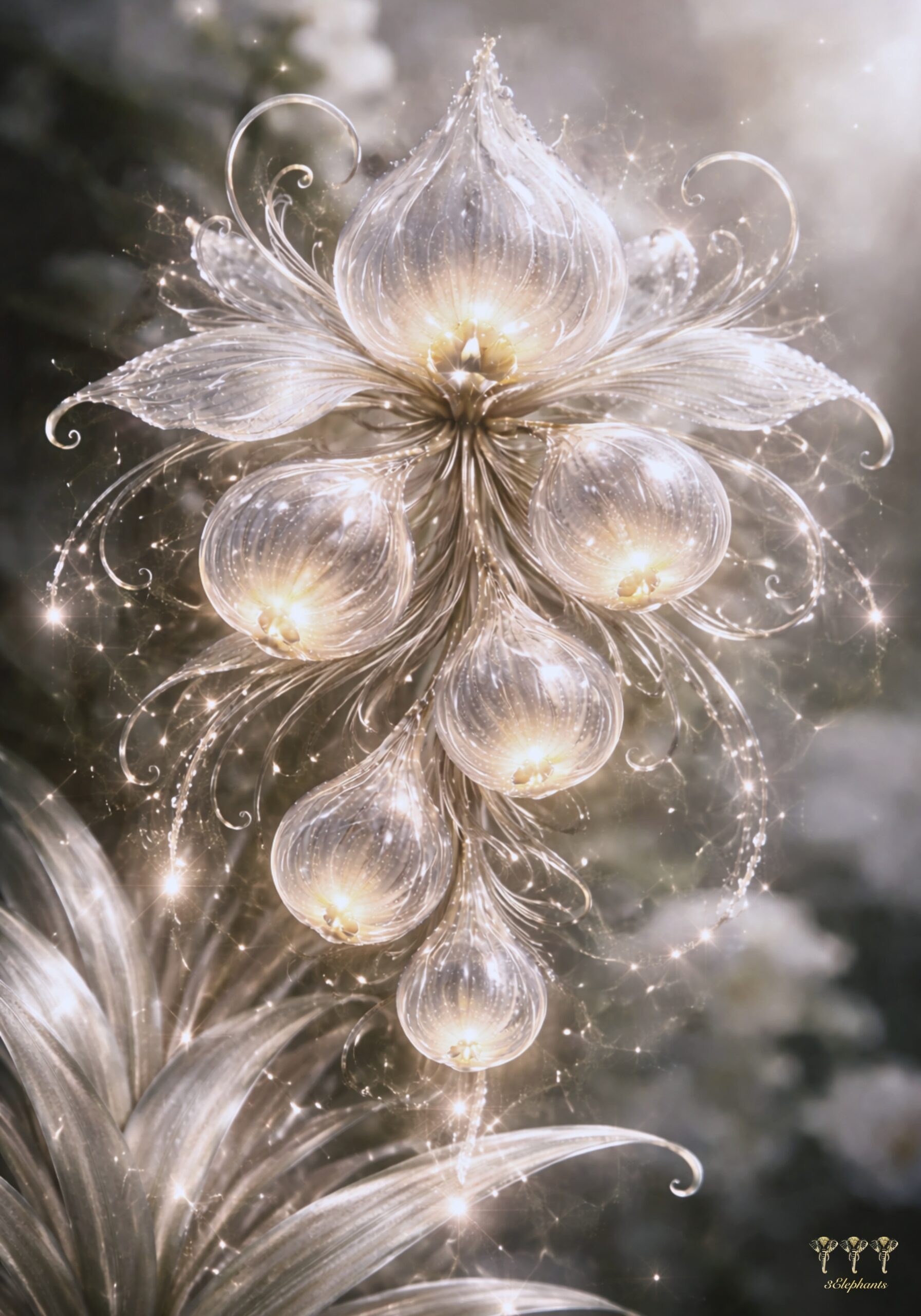 Each suspended drop echoes a shape in transformation. Soft metallic tones and flowing lines create a sense of gentle movement. An elegant piece that adds depth, refinement, and a luminous presence to any space.