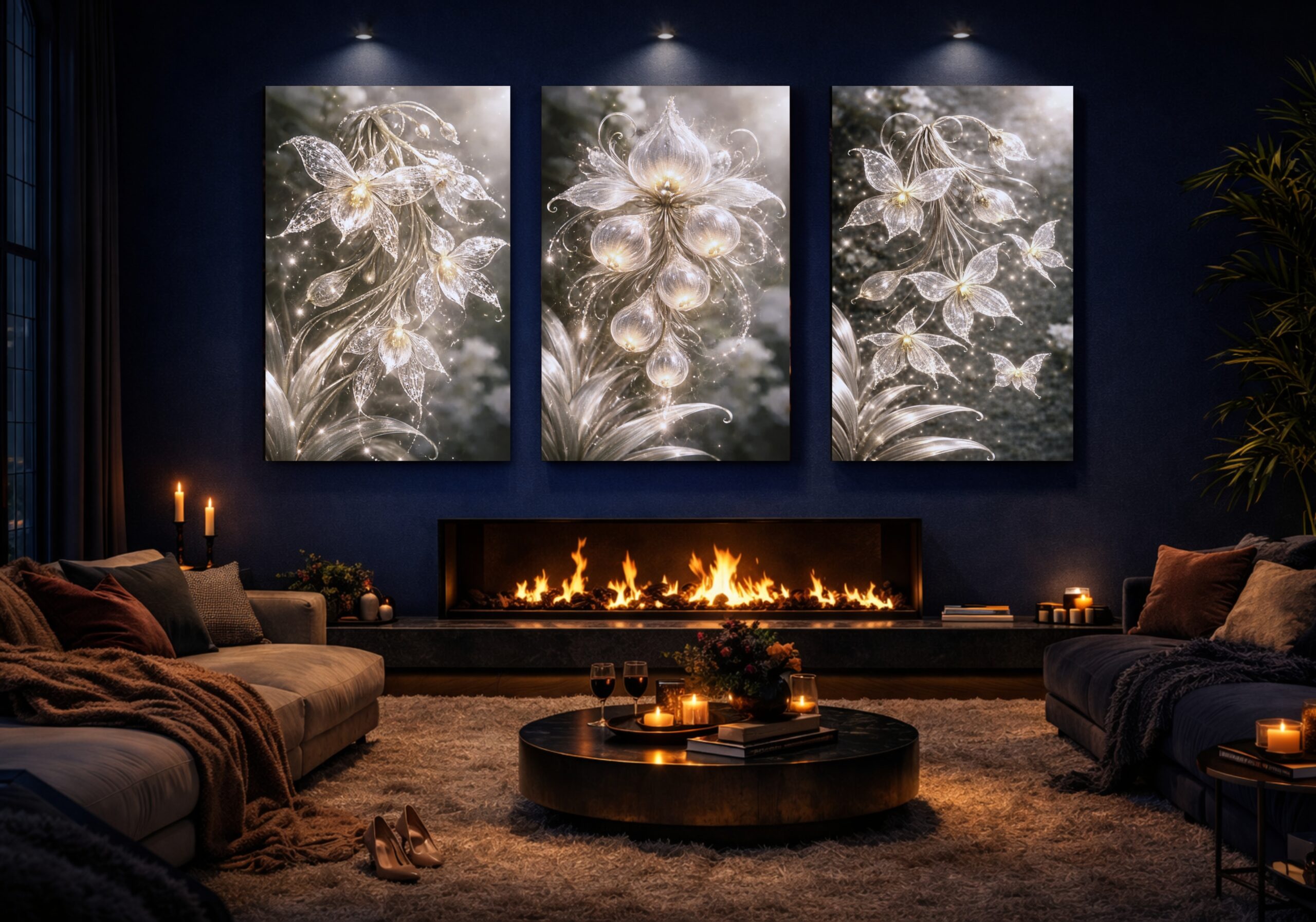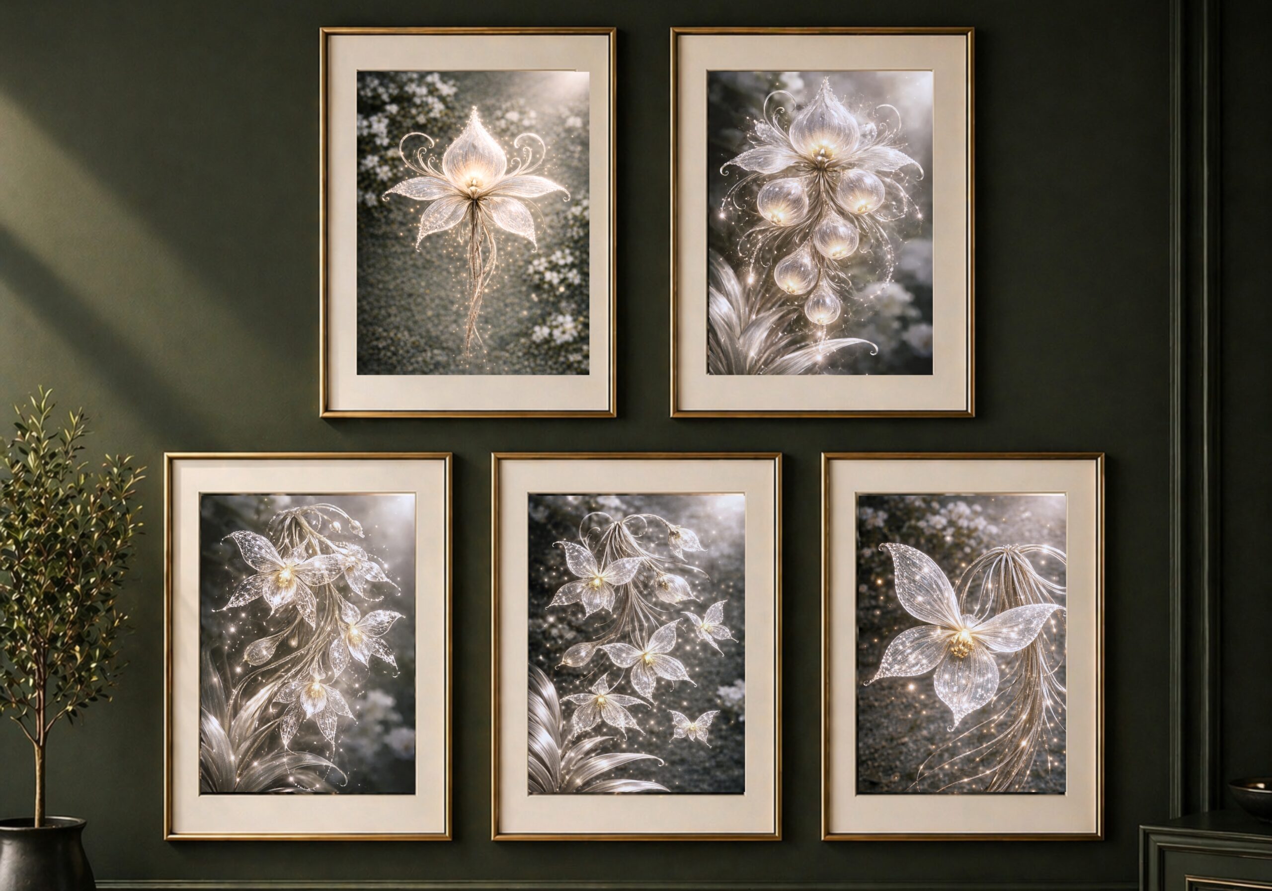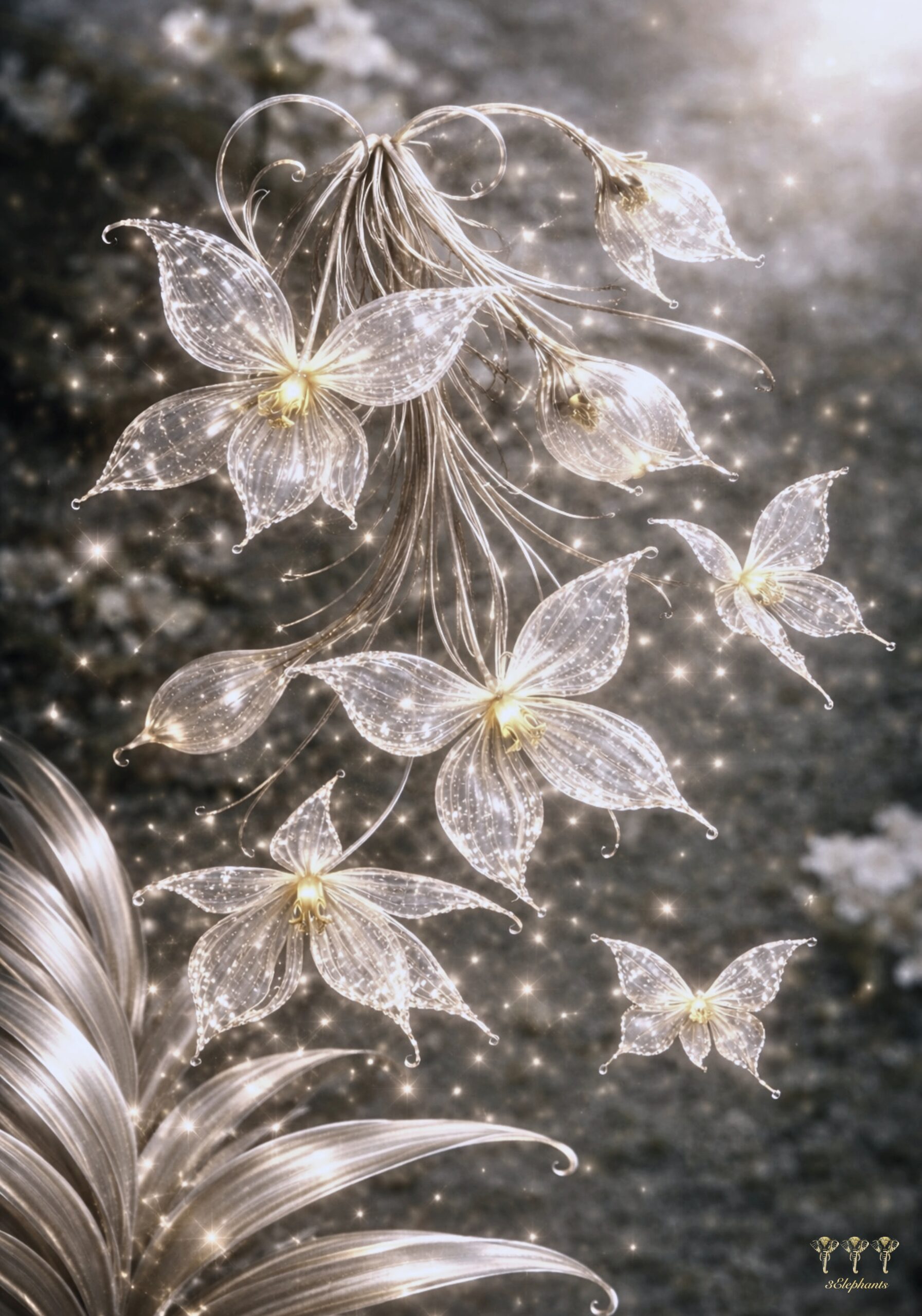 Blooming forms begin to separate and drift outward. Petals gradually take the shape of butterflies in motion. A composition that moves from flower to flight.