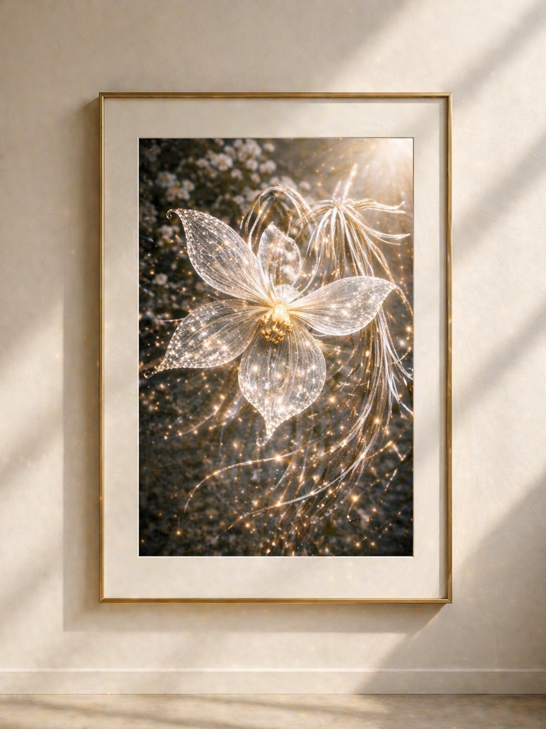 A single butterfly bloom suspended in motion. Delicate lines extend when the butterfly preparing to lift. An elegant final piece where flower and butterfly become one.