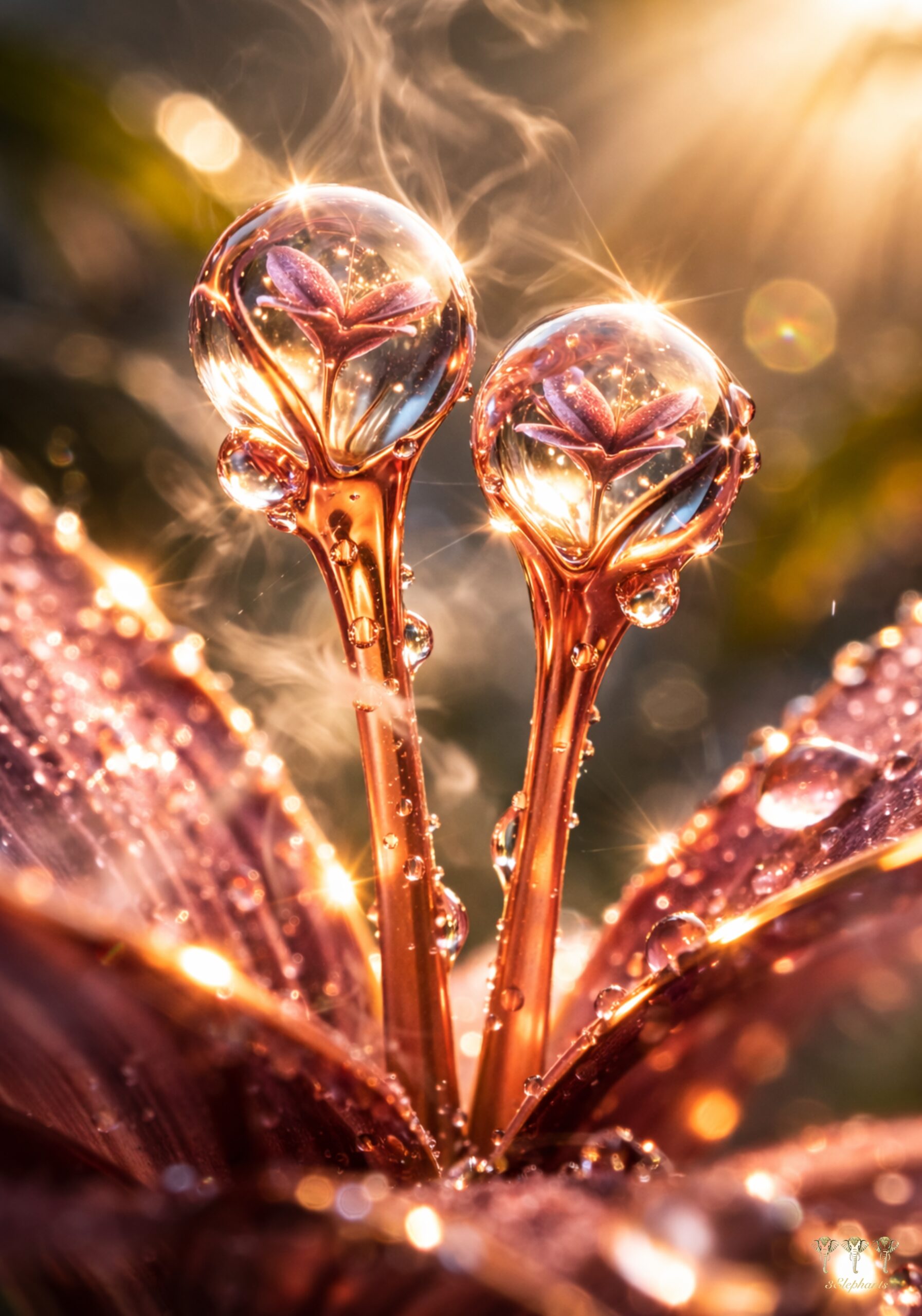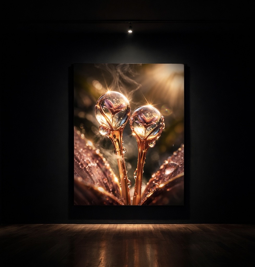 Two lights rise from the same hidden source. Separate, yet forever speaking the same language of bloom. Together they reveal that beauty rarely grows alone.